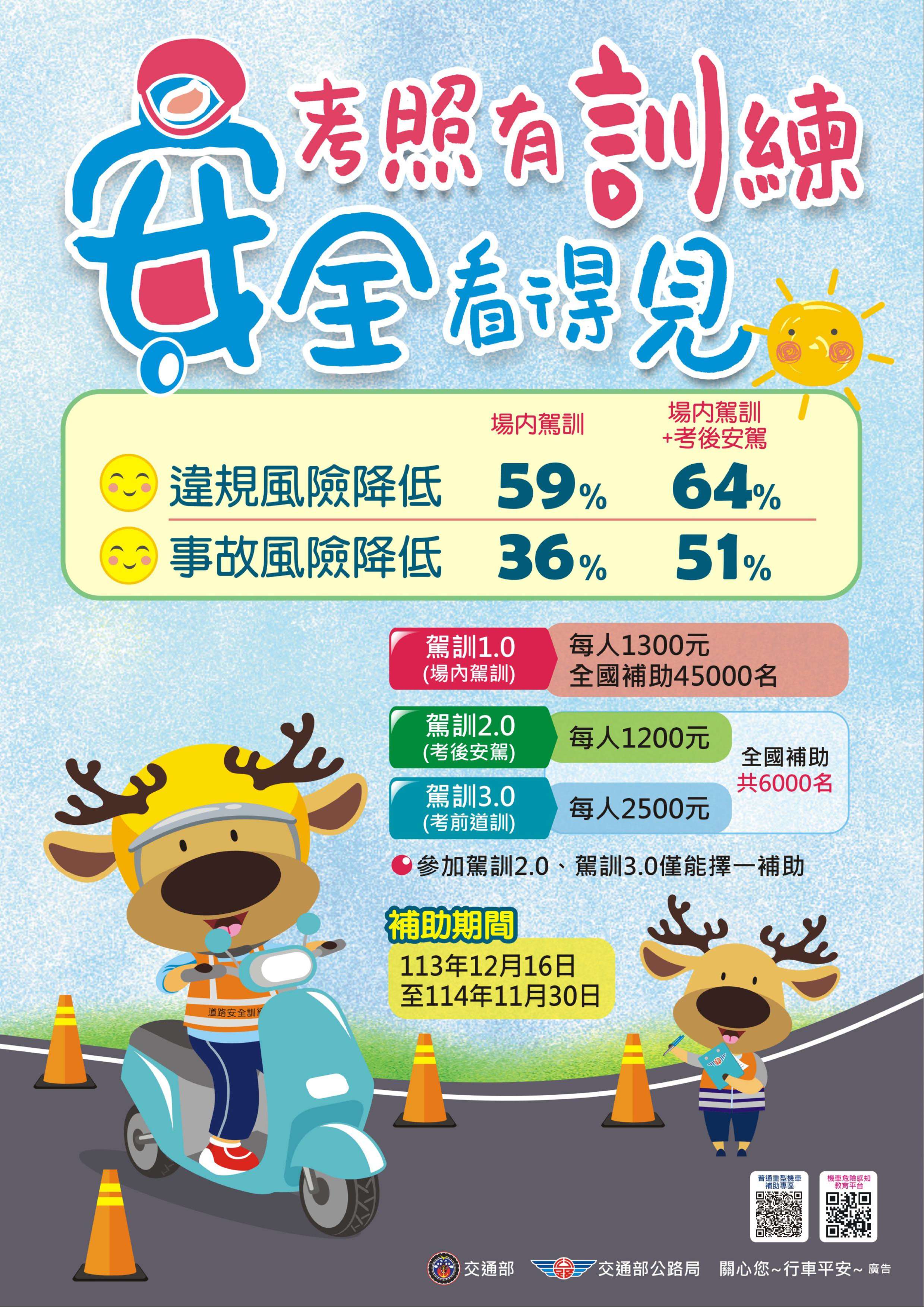 主旨:函轉交通部公路局機車駕訓補助宣導文宣(中文及多國語 言版)一案,請查照。